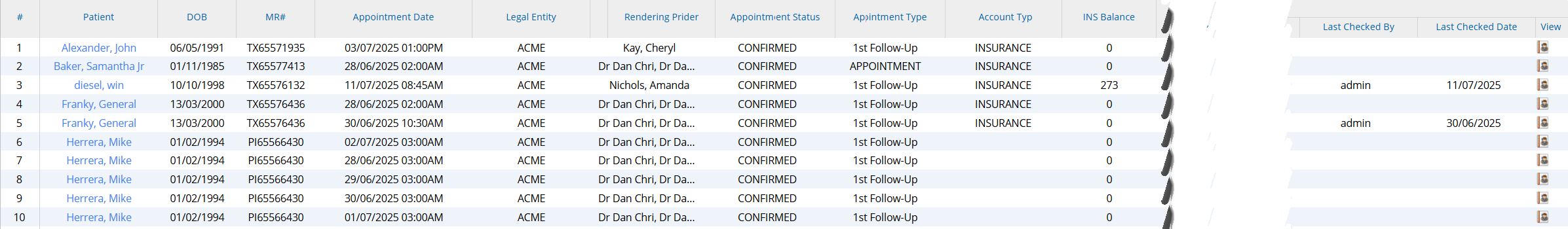 Appt. Status | Checked in/ Checked out/ Canceled/Missed, etc. |