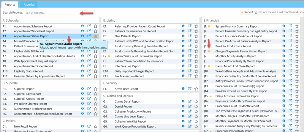 3. PracticeSuite has more than 100 reports added to Report Central. All the reports are categorized and listed with unique IDs assigned to them. Below is the category list.