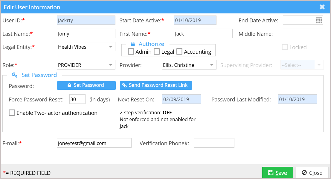 4. Click the Save button; the user will now be activated.