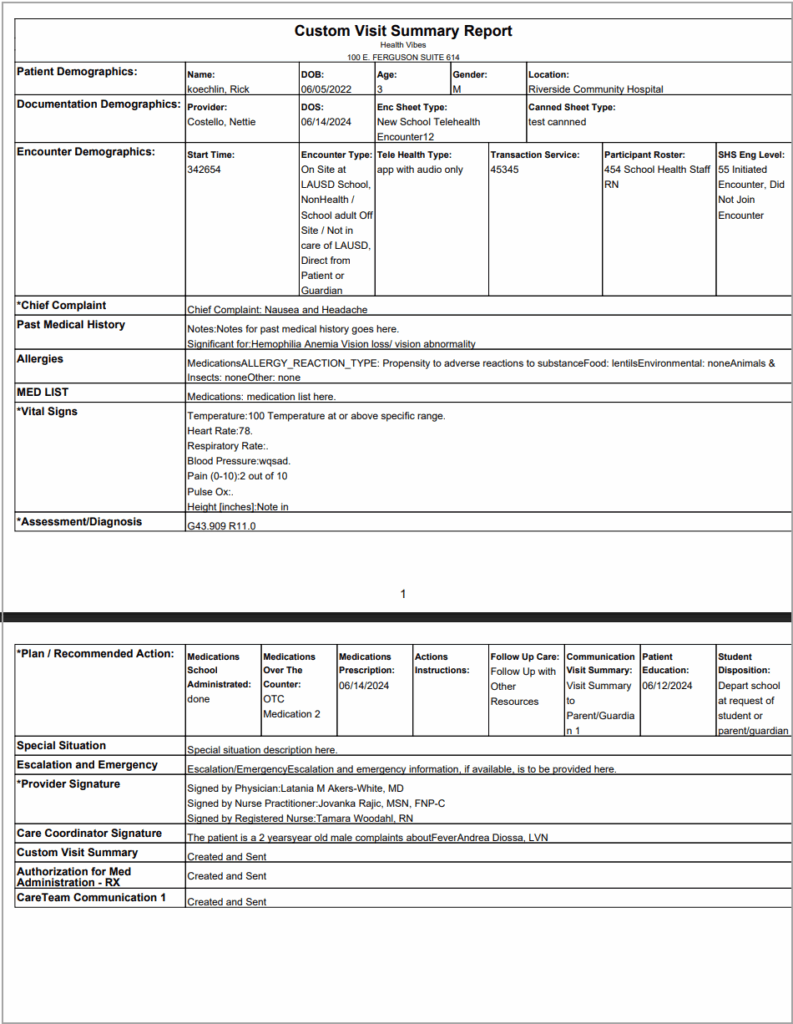 The Custom Visit Summary report is a special report that can be generated for each encounter for patients seen within a specific time span.