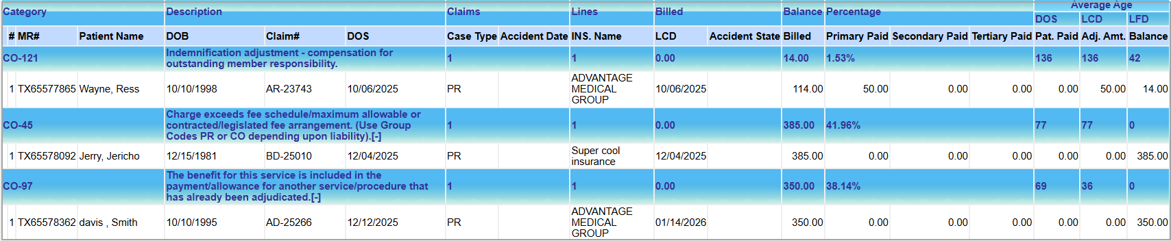 5. This report has a column added for Contractual Adjustment Amount, which takes the formula Contractual Adjustment Amt = Billed Amount – Allowed Amount