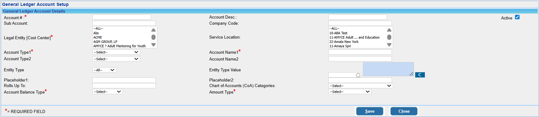 Active (Checkbox) | Indicates whether the account is currently active and usable. |