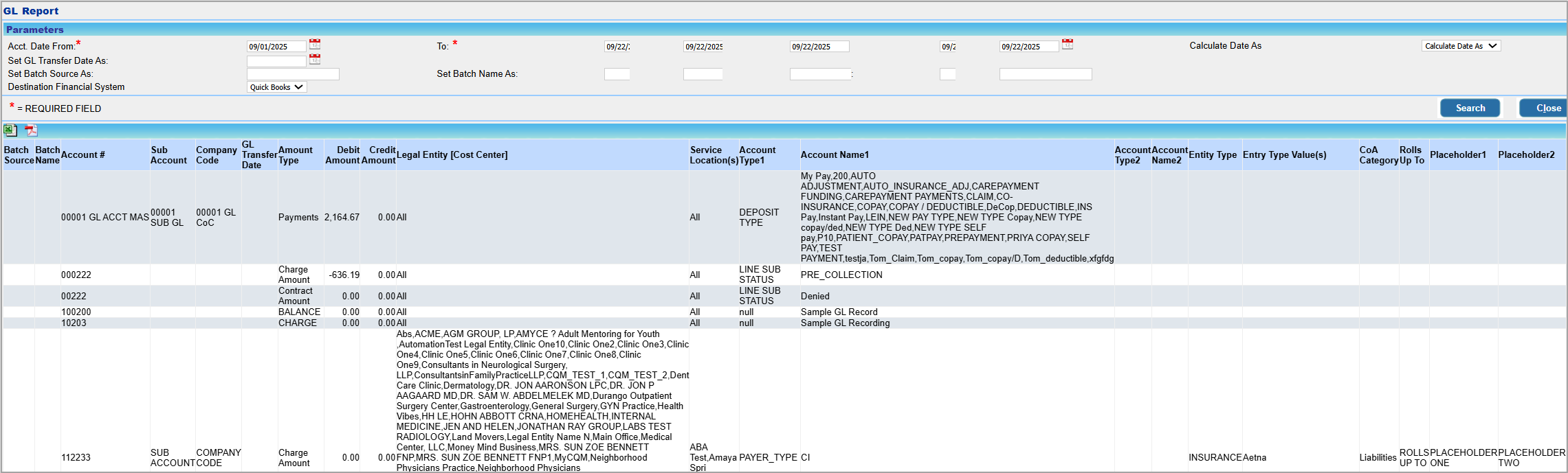 To run the GL report, go to Advanced Setup->GL Report. Provide appropriate search parameters and click on Search.