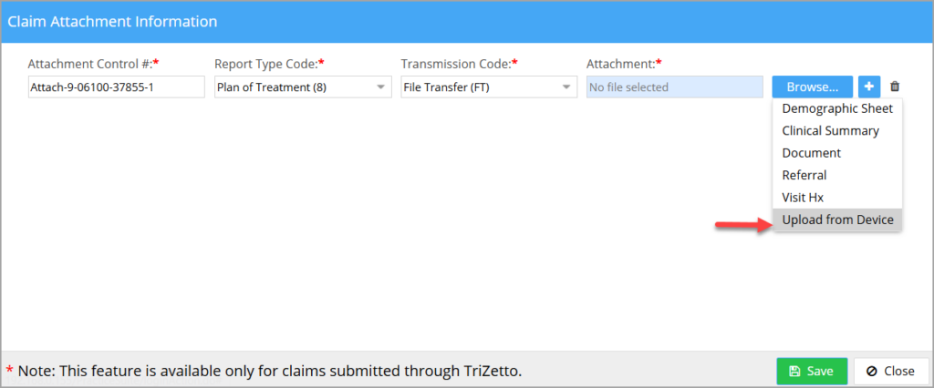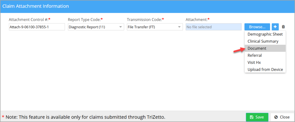 Note: Electronic attachment submission is currently supported only for primary insurance claims sent through Trizetto.