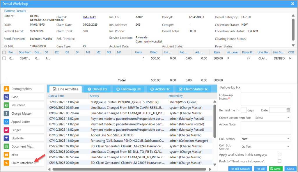 The new multi-attach functionality streamlines the submission of multiple attachments (supplemental claim information) for primary insurance claims. By automatically linking uploaded documents to the specific patient encounter, the system ensures centralized document management directly within your billing workflow.