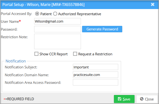 | Portal Accessed By | Patient/Authorized Representative |